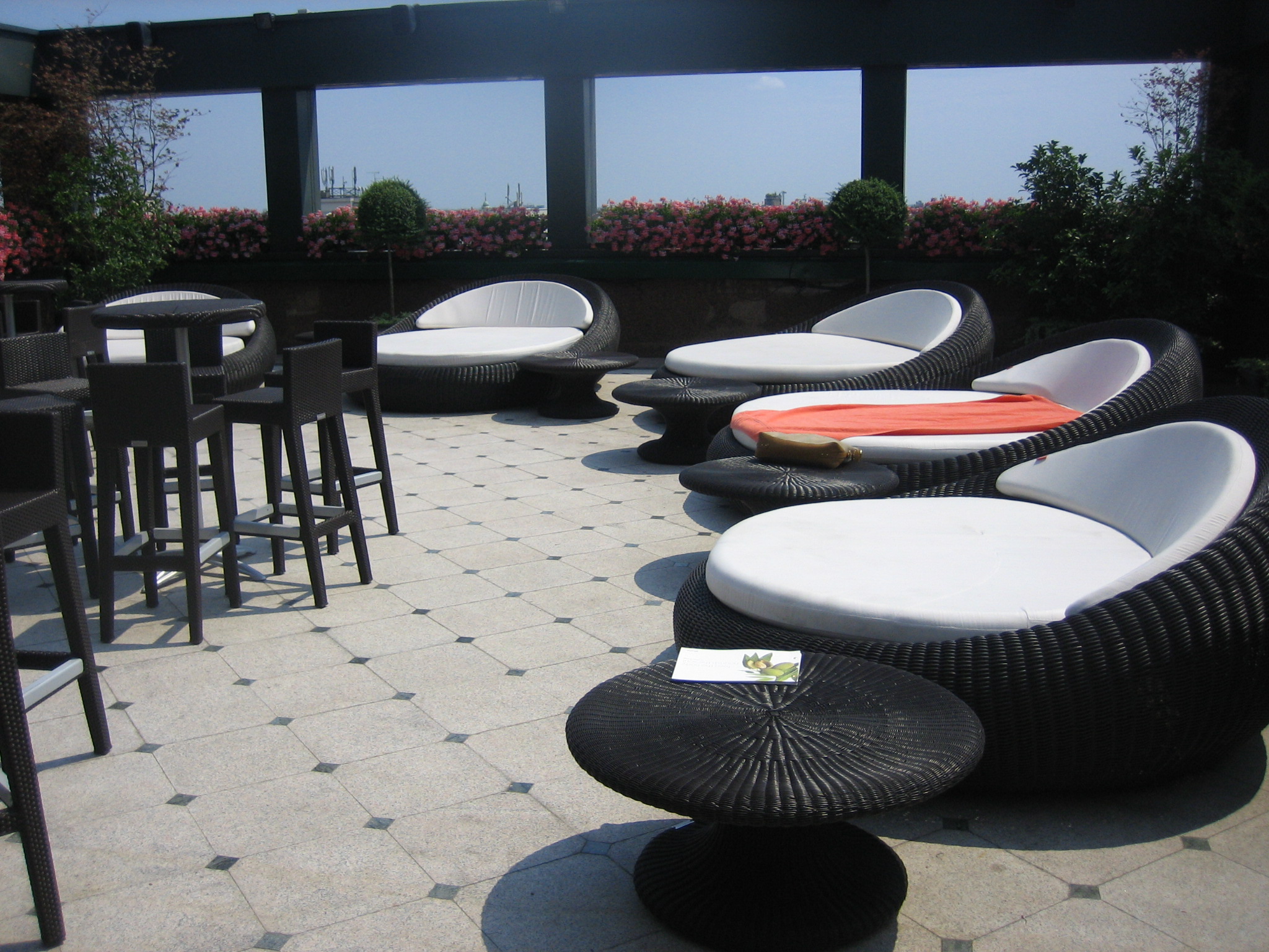 When you get to know a little sanctuary in the city, it’s hard not to take advantage of it where possible. To my delight I discovered a fairly simple but serene rooftop area at the Westin Palace Hotel in Milan. Apart from struggling to see my laptop screen in the bright sunshine (dare I complain!) it allows me to have a break from working in my hotel room and tan my legs in the process.